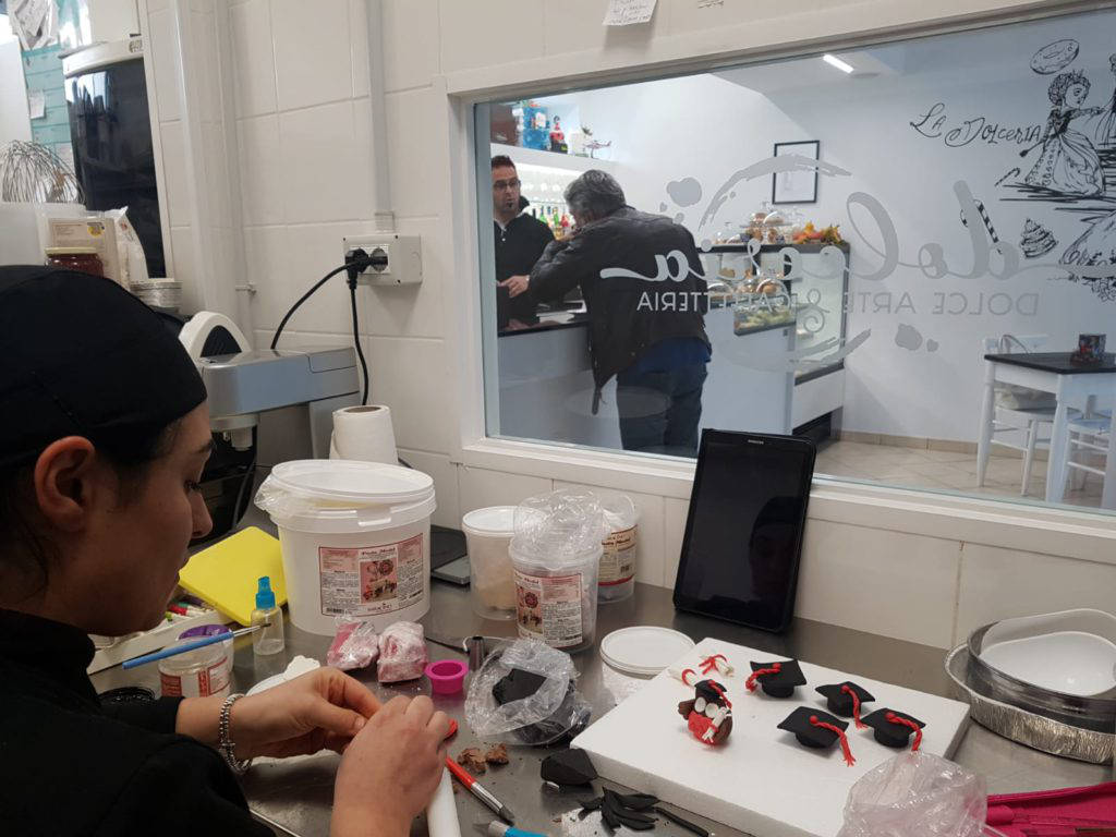 Dopo tanti sacrifici finalmente prende vita “La Dolceria” un concept che mancava a L’Aquila, un luogo dove potersi rilassare gustando deliziosi dolci dalla colazione al thè, sorseggiando un ottimo caffè, contornati dalle tante torte in pasta di zucchero, opere che si possono ammirare in divenire grazie al laboratorio a vista della Dolceria.